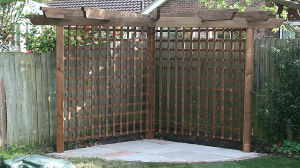 Trellis can be fitted in behind a pergola also adding another feature to the landscape construction or indeed bespokely built into the design. All Patio Design is capable and able to provide this service for the garden landscape clients.